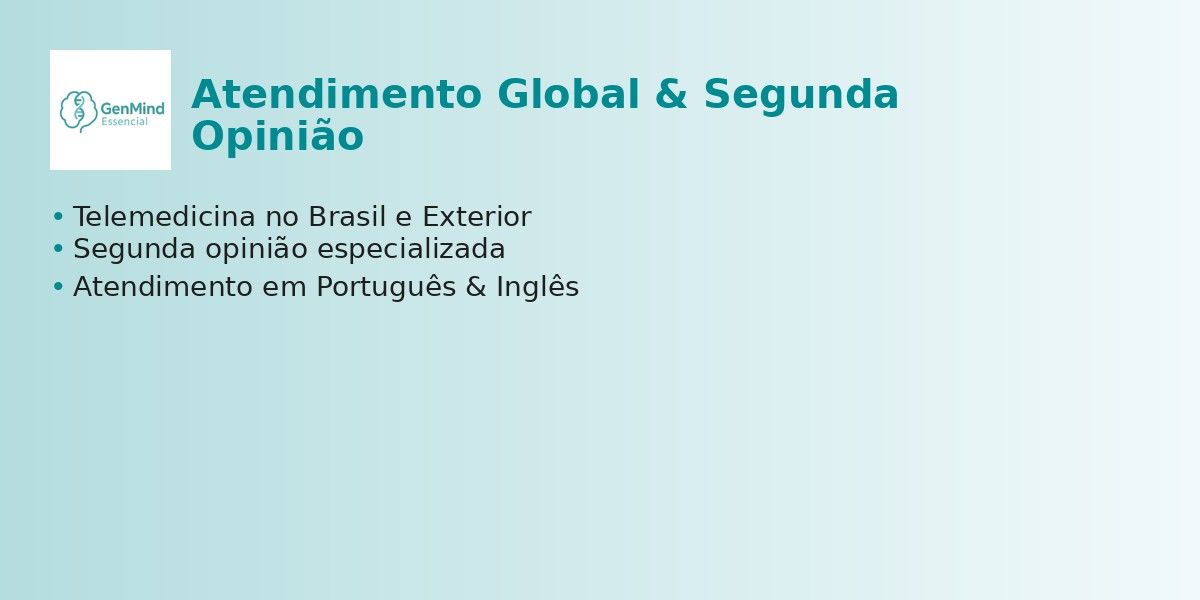 Ofereço atendimento humanizado e acessível, exclusivamente por telemedicina (particular ou via Alice Saúde), com opção presencial sob demanda. Para brasileiros no exterior ou casos complexos, forneço segunda opinião especializada em PT/EN, incluindo relatórios clínicos personalizados em PDF e protocolos terapêuticos pós-consulta.
